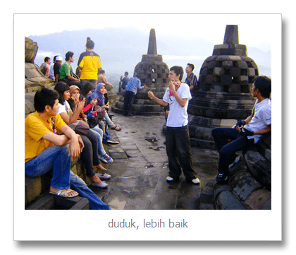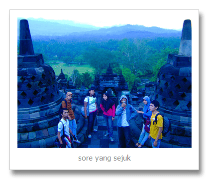 setelah istirahat dirasakan cukup, kami segera melanjutkan perjalanan kami. perjalanan sekitar 45 menit mengantar kami ke tempat parkir objek wisata Candi Borobudur.